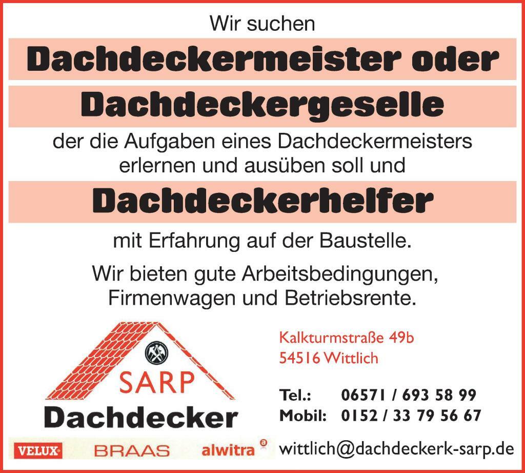 Wenn Sie Fragen haben, nehmen Sie mit uns Kontakt auf. Über dieses Formular, telefonisch: 06571 693 5899 – oder per Mail: wittlich@dachdecker-sarp.de